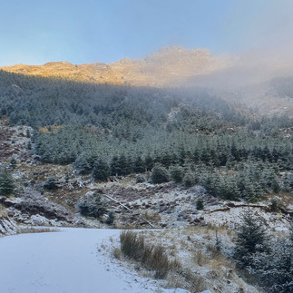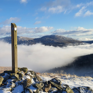 Sunday started off the most fantastic day. Chattering all the way, we started the walk enthusiastically, loving the first dusting of snow with the virgin whiteness only being disturbed by deer and rabbits. The sun had not long risen and the hills had a sleepy glow defused by low and slow-moving clouds. The initial climb was gradual and straight forward but once the track disappeared it was hands to the ground for a crab-like crawl to the sumit across tussocky terrain. At one point, we formed a hand-holding chain - good friends on the hills are an essential part of my outdoor kit! Throughout the day, we all took a turn to hit the icy ground hard (except Vince) and i took an unelegant drop into a sinkhole, up to my knee with the cold mud level way above my boots seeping inwards. After one big tug and no movement whatsoever - I'm stuck. Another almighty tug with both hands to help and an alarming suction fart echoed from the darkness as the boot was helped to the surface. One leg now weighed twice that of the other, caked heavily in mud and full of watery sludge. The chattering continued distracting us off-route and we had to scramble the fence line for a quarter mile or so to retrace our steps. Back to the bus tired, hungry and wet we headed home after a tea and cake stop in Arrochar with Vince's family. Another memorable day on the hills with all the added 'extras' just serving as a reminder that I am hardier than I give myself credit for...